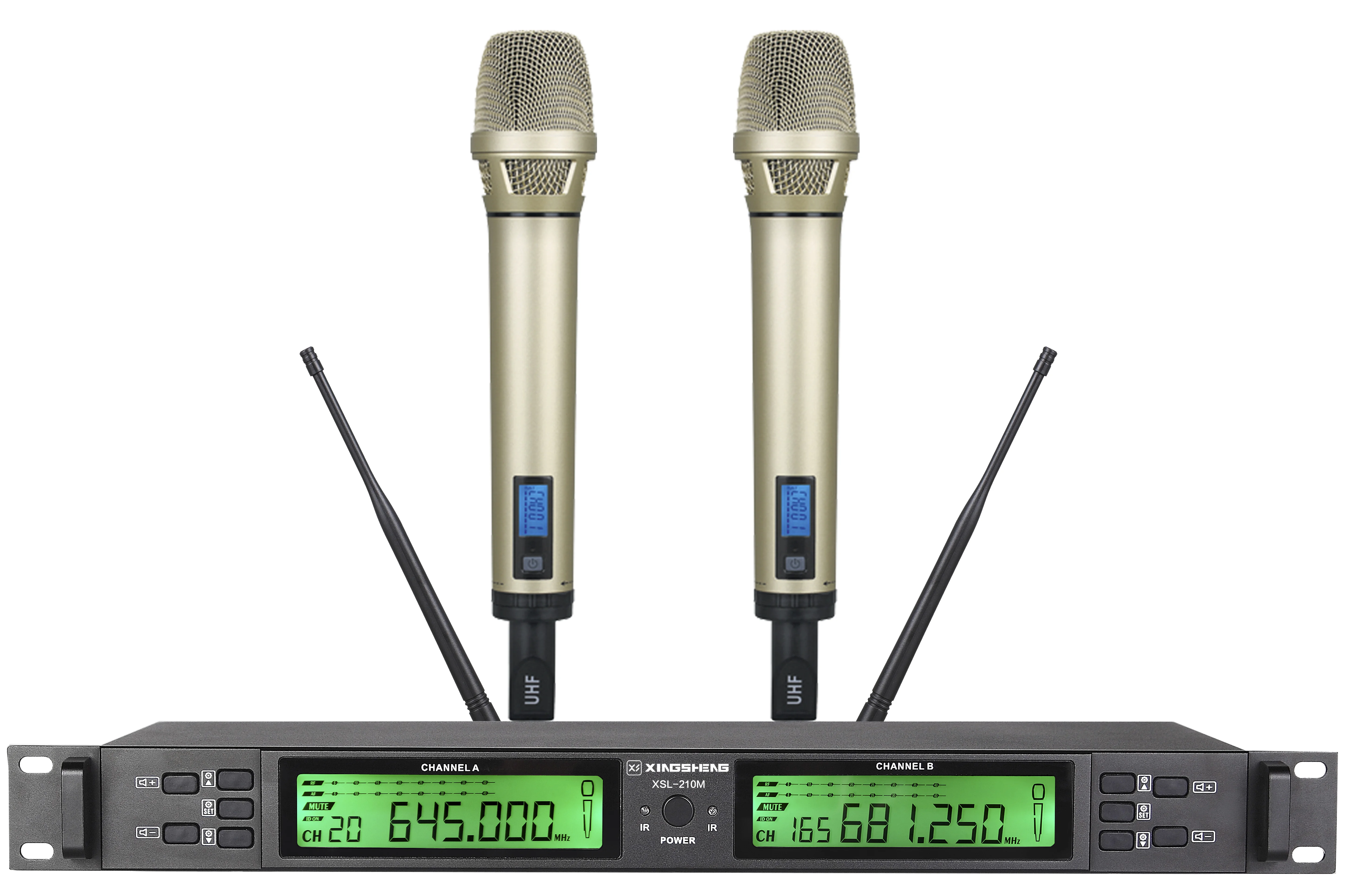 該主機的性能特點是內置頻率自動掃描功能,在LCD屏即可查看掃描結果,可以在工作狀態中快速搜索并鎖定不受干擾的頻率,并擁有超強的抗干擾能力,能夠有效抑制由外部帶來的噪首干擾及同頻干擾,提供2個天線通道(BNC接口)、2路平衡式獨立音頻輸出(XLR接口)、1路非平衡混音音頻輸出(?6.35mm接口),采用UHF600-699MHz頻段載波,PLL鎖相環回路設計,真分集超外差二次變頻主機,采取純自動選訊(真正分集)接收設計方式,不但接收距離遠,且能消除接收斷音,主機具有200-300米的有效工作距離(可視距離),并且主機具有話音高保真、功能特強大、特性最穩定的專業品質,專為舞臺演出而設計,主機采取金屬外殼1U的標準機柜設計,安裝方便具有鎖鍵功能,防止人為誤操作使用電子音量控制,具有解/鎖ID功能,更專業配合天線分配系統可實現會場無線信號全覆蓋,紅外線對頻、發射器可以互換、操作簡單。
